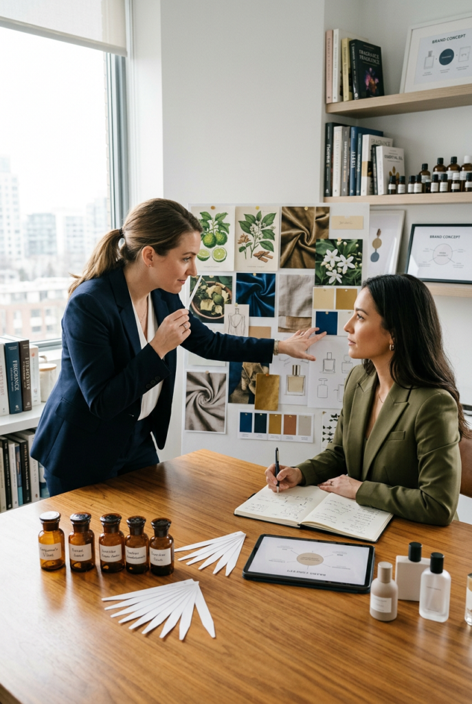 We begin by understanding your vision, target market, and fragrance direction, while advising on budget, quality, and timelines.